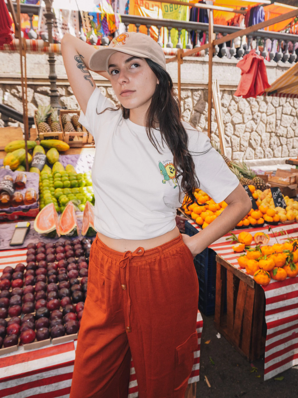 o boné sol demais é o passaporte pra vibe de férias! na frente, o nosso solzinho com a frase "sol demais" bordado em cores vibrantes que contrastam perfeitamente com o bege do boné. ah! ele tem regulagem atrás para vestir perfeitamente em você ;) com ele, o clima é sempre de verão, seja pra pegar um sol ou só curtir o rolê no fim de tarde!