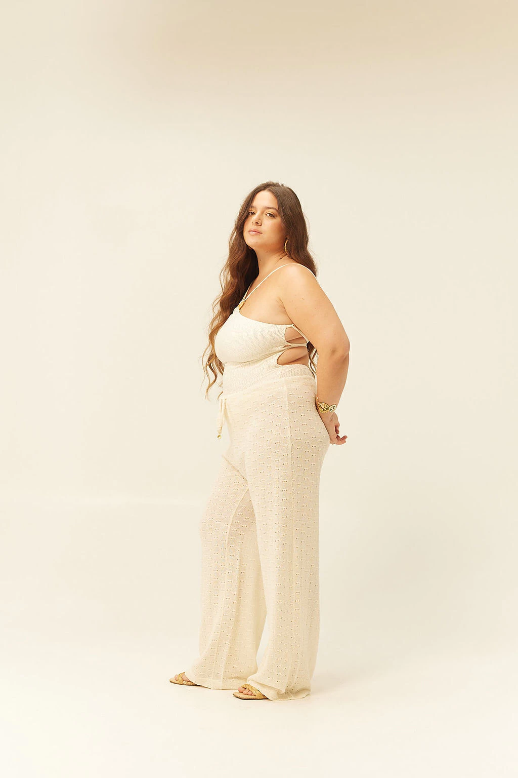 a calça com cordão soleiu é confortável, estilosa e pensada para vestir o verão com leveza. feita no tecido texturizado com padronagem vazada, ela é fresca, respirável e tem um caimento suave que alonga a silhueta. o cordão ajustável traz um toque artesanal e garante conforto total. uma peça versátil que vai da praia ao dia a dia, sempre com um mood solar e descomplicado.